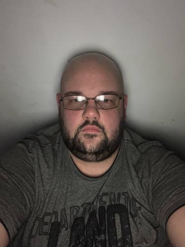 Jeune pas trop social timide avec bidon barbu et crâne rasé